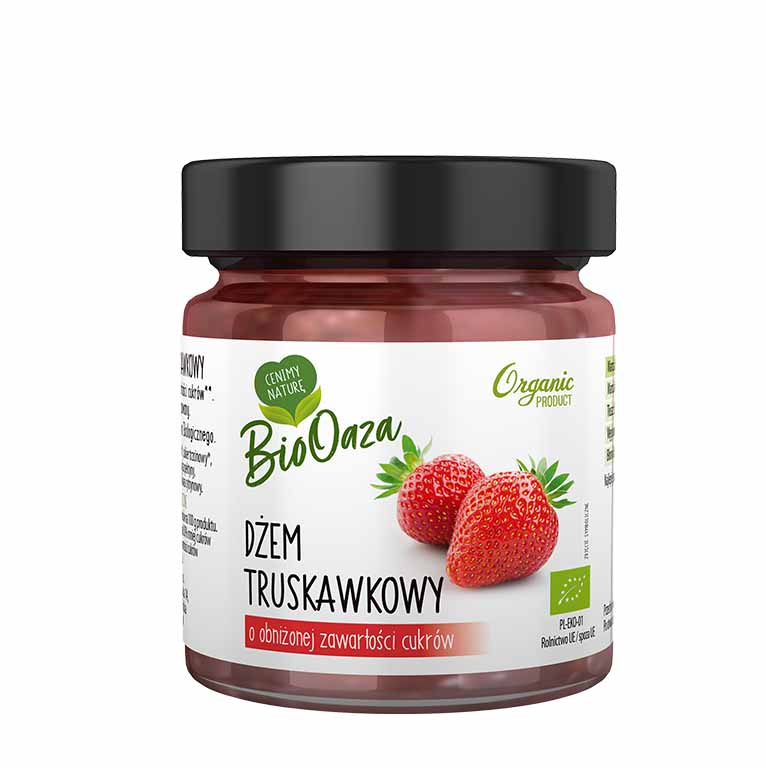 Dżem truskawkowy o obniżonej zawartości cukrów 210g BIOOAZA